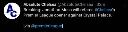 Chelsea won only one game officiated by Jonathan Moss last season. They drew against Westbrom and finally lost to Everton. However, the blues can still win their first 2021/2022 EPL game despite their record with Jonathan Moss.
