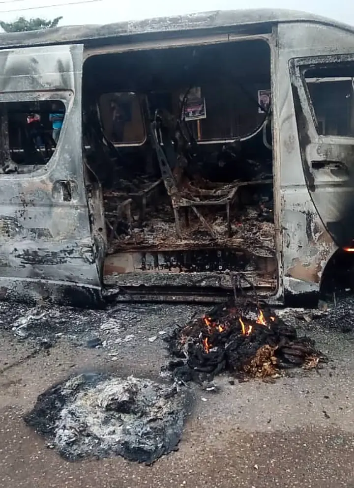 The assailants also destroyed three commercial buses. An abandoned Toyota Camry car, was also seen in the area. It was gathered the owner of the Camry abandoned the car and ran away, for the fear of the gunmen.