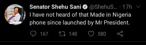 This is really a funny one from Senator Shehu Sani. Well, I really think it’s going to be a welcome development if we can start producing phones and other things in Nigeria, because I am very sure that we have what it takes to start producing phones in Nigeria. All we need now is just support and encouragement.