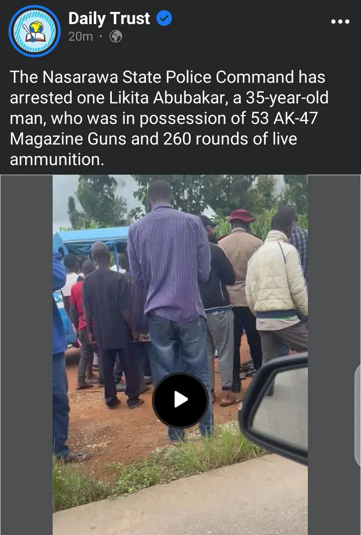 The Issue of a man who was arrested by Nasarawa State police with 53 AK-47 magazines is indeed a thing of shock to many. This man is just 35 years old and has been identified by the name Likita Abubakar.