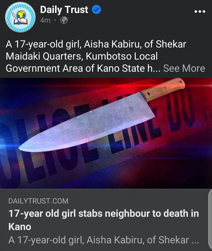 According to reports, a 17 years old girl have been arrested by members of the Nigerian Police force for allegedly killing her neighbor. This suspect has been identified by the name Aisha Kabiru.