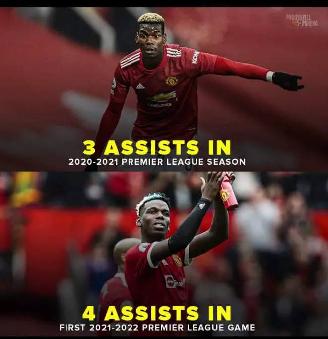 Similarly, Paul Pogba also became the 10th player to provide 4 assists in a single Premier League game.