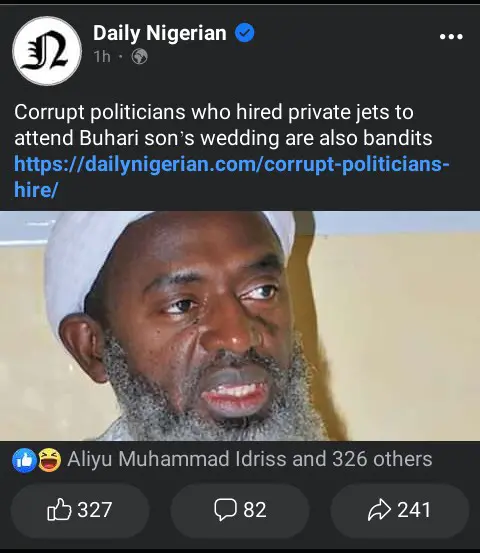 Controversial Islamic cleric Sheikh Ahmad Gumi has condemned the hiring of private jets by politicians to attend the wedding ceremony of the Yusuf Buhari, the son of President Muhammadu Buhari.