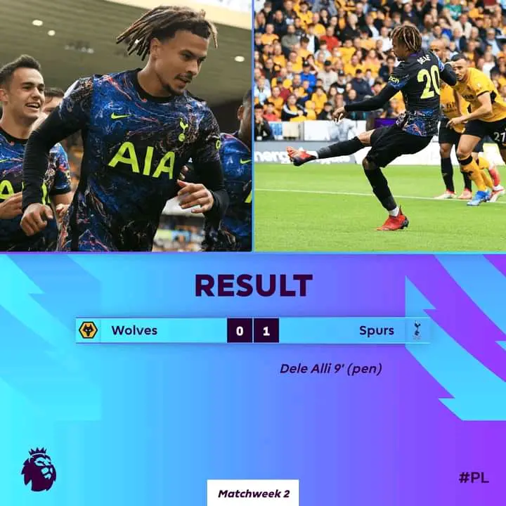 A first half penalty from Dele Alli proved to be enough for Nuno Espirito’s side who maintained their perfect start to the new premier league campaign.