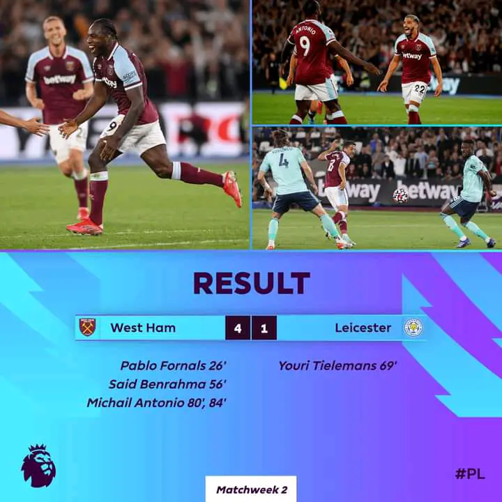 Before the Monday night football between West ham United and Leicester City was played, it was Chelsea who was ahead of Liverpool despite also having the same points, same goal difference, and same number of goals scored. However, after West ham win 4-1 at home to Brendan Rodgers side, they leapfrog the two title contenders to take an early lead in the race for the Premier League title race this season. In an attempt to clarify any confusion as to why the Hammers are top of the league table ahead of Chelsea and Liverpool, we will analyze the reason below