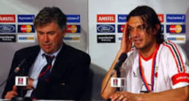 7. Carlo Ancelotti and Paolo Maldini: During his eight-year tenure at AC Milan, Ancelotti coached his former teammate Maldini, winning the Serie A, two Champions League titles, and numerous other trophies.