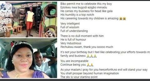 A Nigerian female boss got many people gushing on social media after her lengthy post for ‘her boy.’ Stella Ngozi in a Facebook post on August 10, showered encomiums on the young man named Ikechukwu who works for her. She appreciated the young man’s hardwork and dedication