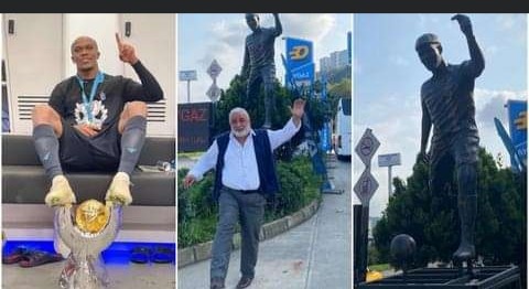 Nigerian football journalist Oluwashina Okeleji (@oluwashina) shared the news on his social media platform adding that the image was erected in Trabzon by Adem Birsen.