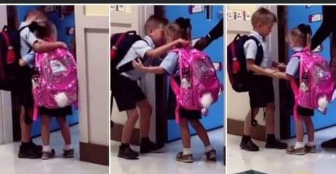 A little boy has become an internet sensation following his caring gesture to his sibling. The unsuspecting boy was recorded by the mother hugging his little sister after she brought them to school and went her way. The boy tried to calm his sister’s nerves by hugging her