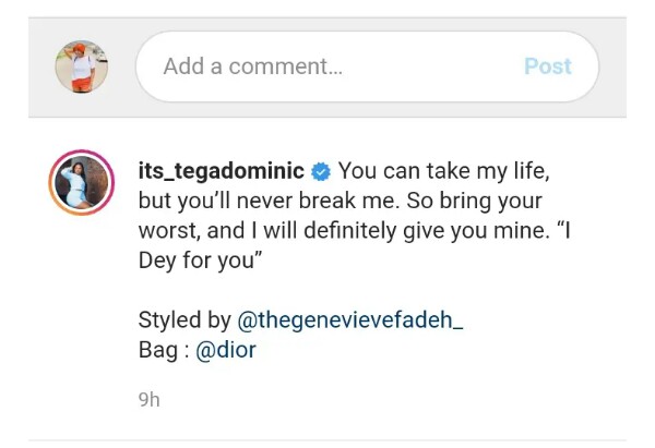 REACTIONS AS BBNAIJA RECENTLY EVICTED HOUSEMATE TEGA STUNS IN HER INSTAGRAM ACCOUNT