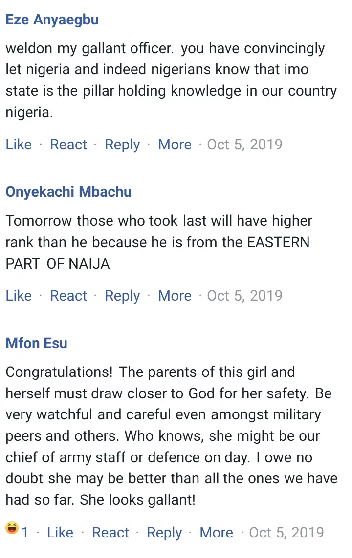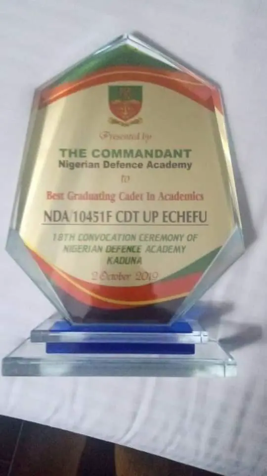 “Congratulations Uchechi Promise Echefu on your emergence as the overall best graduating student in the Nigerian Defence Academy Class of 2019.”