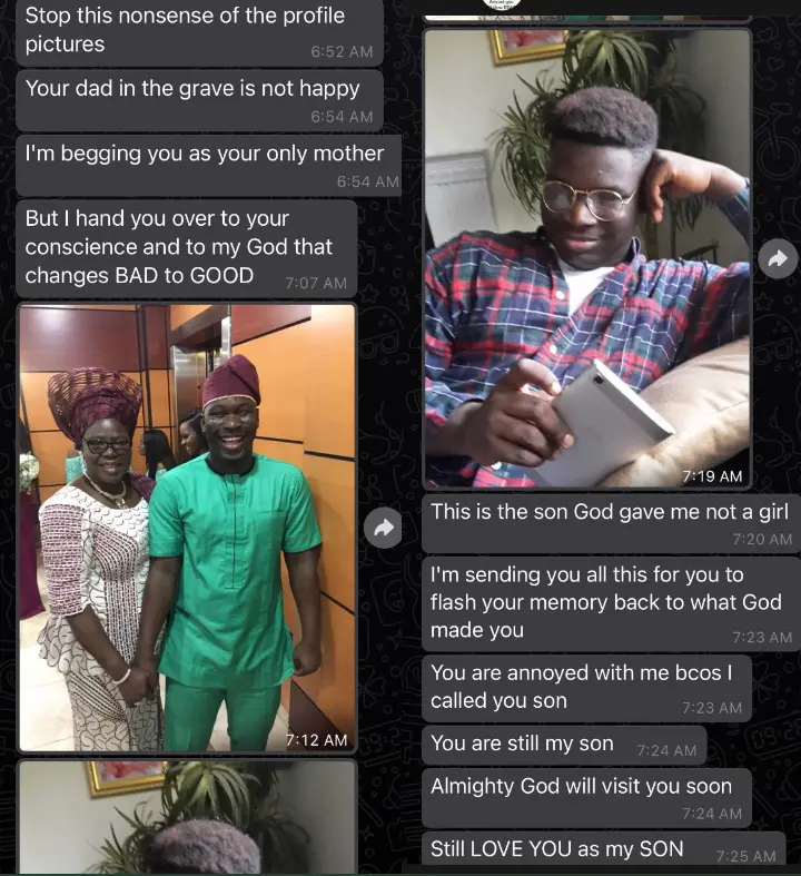 A mother cried out Bitterly after her son changed into a woman using surgery. The mother, who posted her conversation with her son turned daughter, said that she still sees him as a son and not a daughter. Her child was angry after she referred to her as a son. She said that it is a son that God gave to her and not a daughter. Lamenting over the incident, the heartbroken woman said that her husband who is in the grave must be so angry and disappointed now over the incident. Many people have been trying to console the woman to take it easy with him and continue to pray for him/her. Many people also stated that they are now afraid of sending their children abroad for studies because of what is happening, as some of them either change themselves to a female. Many parents are not happy about this because of the Africa culture and mentality. A young man who reacted to the news tried to console the woman, saying that,” 3 things that can hold a person’s Decision